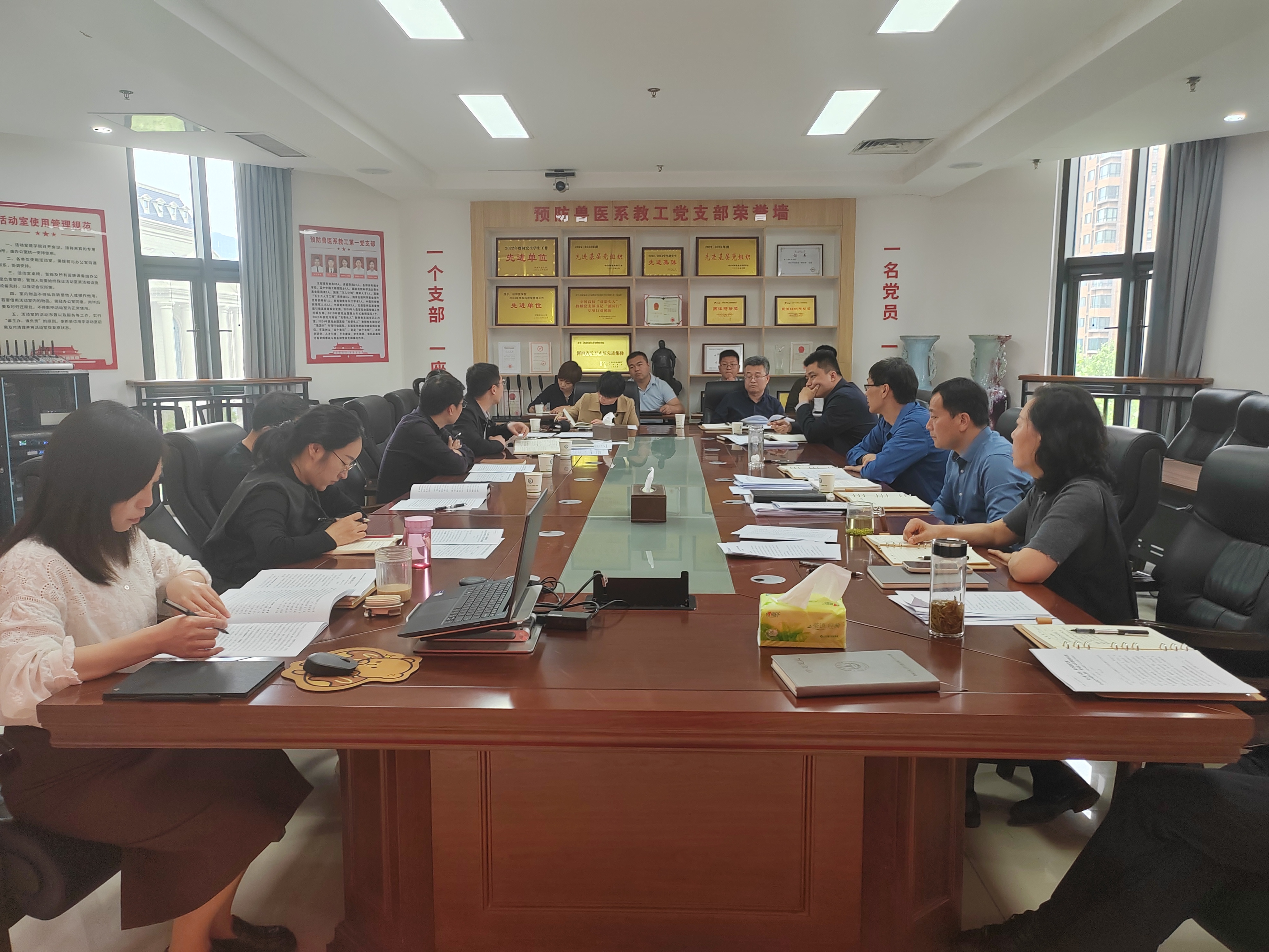 4月24日,丝袜av 召开院党委理论学习中心组集体学习(扩大)会议,进行中央八项规定精神学习教育四月份集中学习。院党委委员、国免中心班子、各教工党支部书记参加。