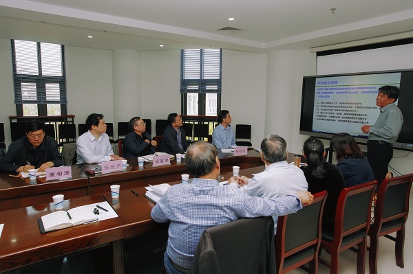 杨国宇首先就学院发展基本情况、学科产业基础、学科建设思路、科技成果产出情况等作了详细汇报。之后,以“变”与“不变”为切入点,深入分析了“方向需凝练、团队需凝聚,短板需补齐、平台需提升”等学科发展中存在的问题。臧为民重点汇报了搬迁后面学院科研平台建设情况及当前学院学科建设面临的机遇和挑战。