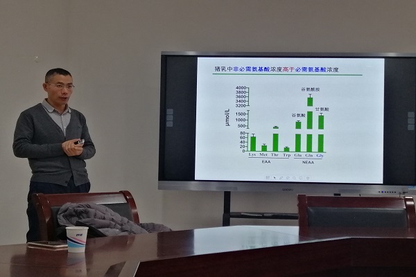 教授讲堂,在龙子湖校区第一实验楼北301会议室作了“氨基酸营养研究与仔猪肠道健康”的学术报告。报告由动物营养与饲料科学系教工党支部书记王志祥主持,相关学科的师生参加了报告会。