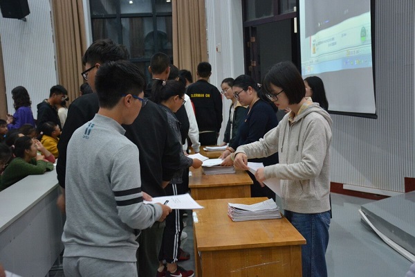 10月12日晚,学院于龙子湖校区繁塔楼大教室2举行了2019级新生递交入党申请书仪式,学院团委书记余果、副书记韩笑和学生党支部书记以及2019级新生参加会议。
