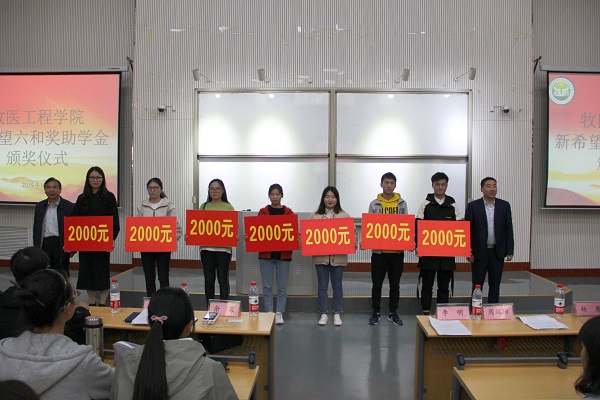 活动现场,余果宣读了丝袜av 关于颁发“新希望六和奖助学金”的决定,周端阳、李明为受助学生颁奖并现场合影留念。