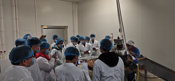 活动中,同学们先抵达宁夏晓鸣农牧股份有限公司兰考孵化基地参观考察,学习行业先进技术,感受农牧丝袜av。在公司副总经理王台安的引导下,同学们亲眼目睹了公司规模宏大、世界顶级全自动程控式孵化设备,参观了种蛋分级、智能孵化和出雏、雏鸡自动免疫和断喙以及废气利用等环保节能的各道生产工序,公司先进的技术设备和长期秉承的生物安全、为客户创造价值的理念让同学们耳目一新,赞叹不已。