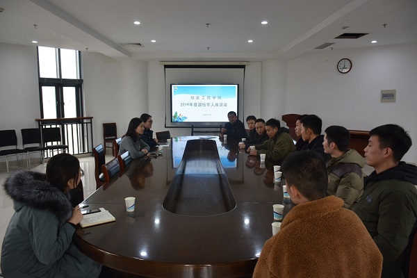 于第一实验楼北430会议室举行了 2019年度退伍军人座谈会。退伍教师代表靳向阳、刘建新、李晓峰及退伍学生代表齐聚一堂,共叙心声。院党委副书记牛娟、团委书记余果、团委副书记韩笑参加座谈。