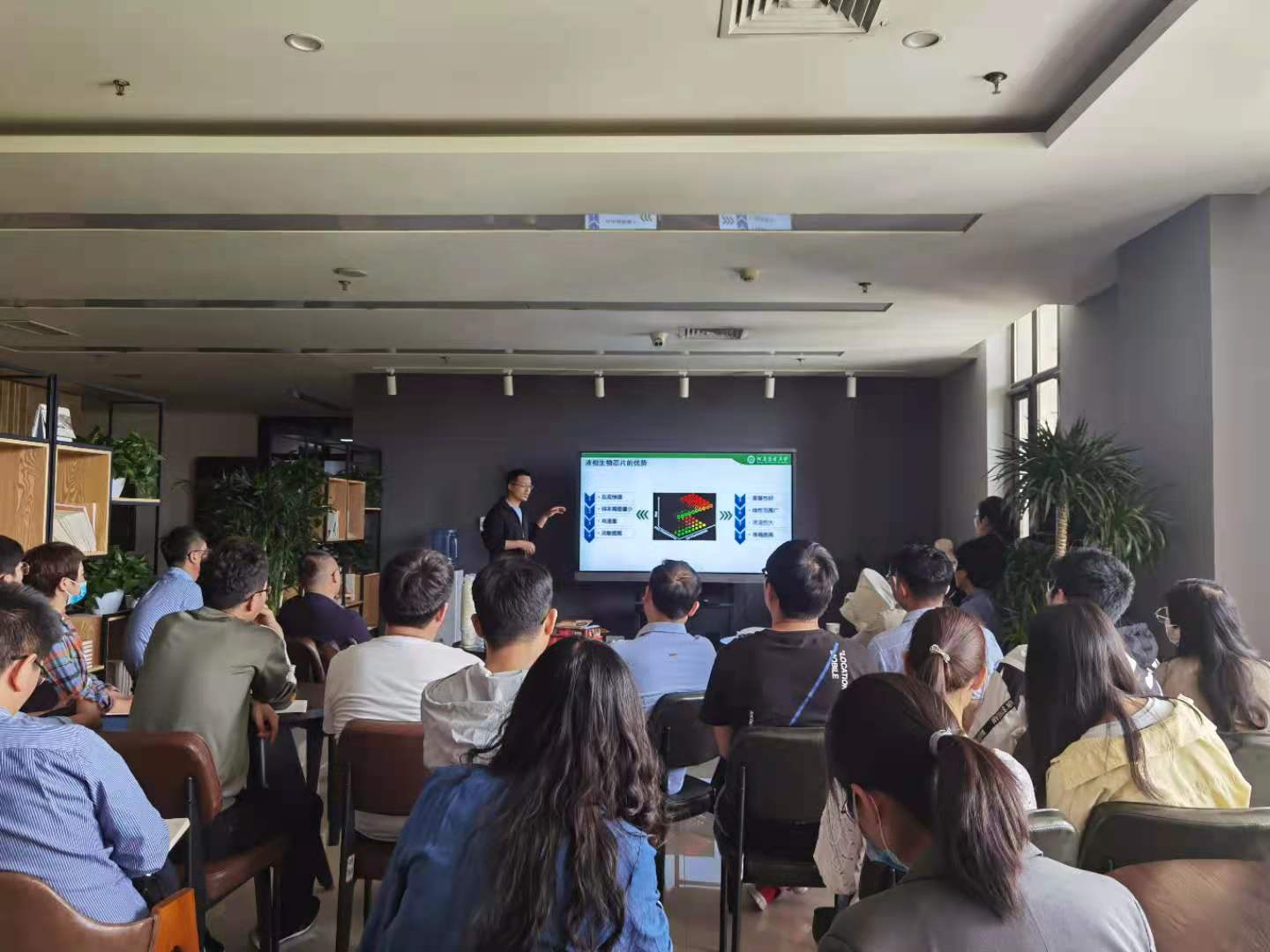 报告会上,项玉强博士从液相生物芯片在应用过程中的优点及存在的问题出发,详细介绍了以单细胞微生物功能微球替代传统的化学合成微球来制备液相生物芯片的优势及其应用前景,为制备新型的液相生物芯片提供了新的思路和技术方案。
