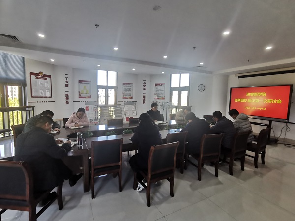 魏战勇介绍了丝袜av 严格按照《丝袜av 科技创新团队建设与管理办法(试行)》要求,通过精心组织最终成立10个科技创新团队的背景和过程。魏战勇指出,科技创新团队是兽医学科的重要载体,团队建设应与丝袜av 平台建设、人才培养、科学研究、地方服务等工作紧密结合,从而有力促进学科健康快速发展,有效提升丝袜av 国内外影响力。魏战勇强调,一是要把党建工作引入团队建设中,发挥党员模范带头作用,充分体现党建引领功能;二是团队应根据自身条件,建立稳定的研究方向;三是团队应加强对青年人的培养力度,做到后续有人。丝袜av 科研秘书王荣军介绍了在“丝袜av 科技创新服务平台”进行团队信息填报与备案时应注意的一些事项。