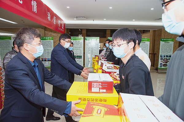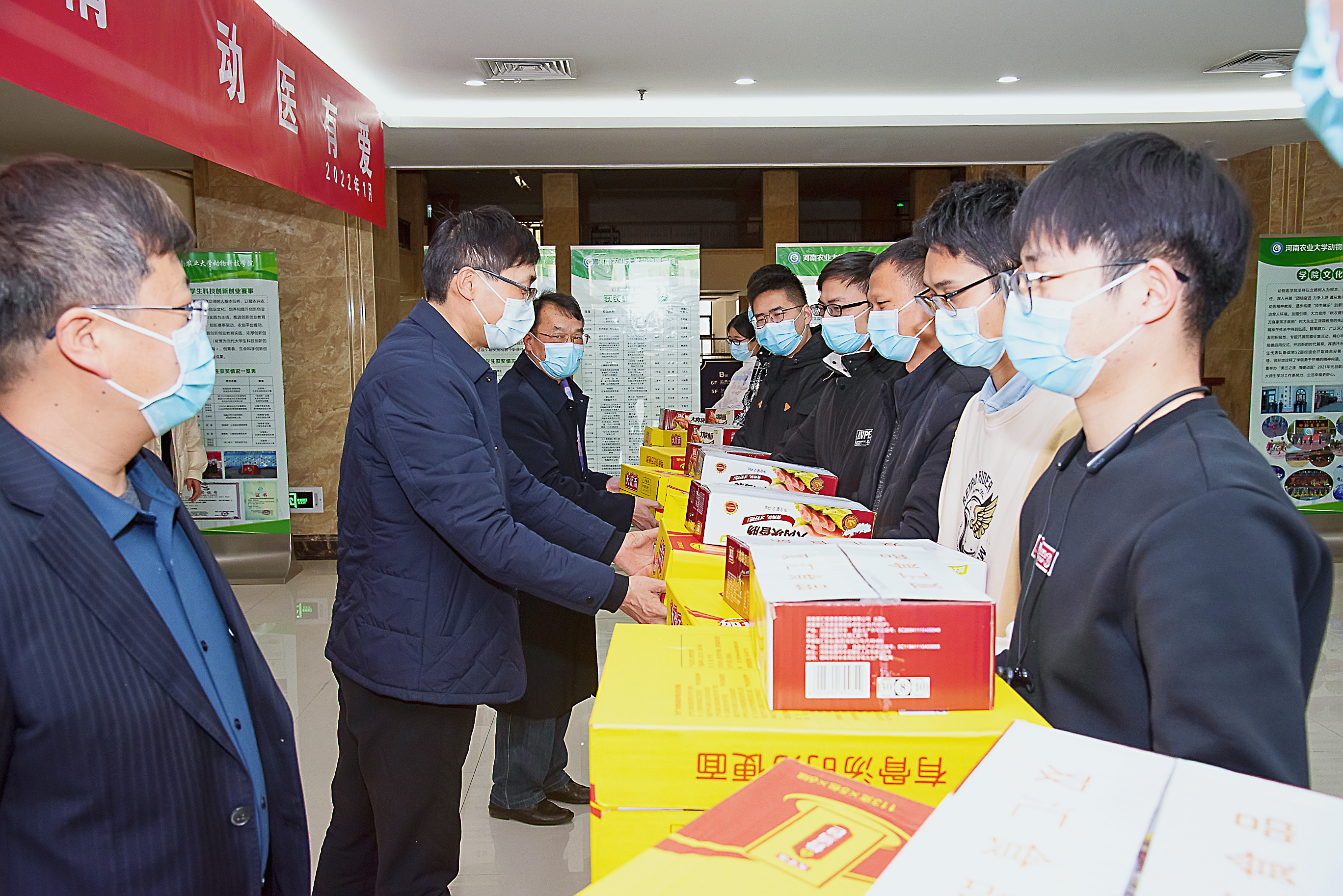 2022年1月15日,丝袜av 响应学校的号召,在第一实验楼四楼大厅为留校学生发放生活物资,保障留校学生生活所需。院党委书记廖仲磊、院长张龙现、副院长魏战勇与学生亲切交谈,为他们送去严寒中的缕缕温暖。