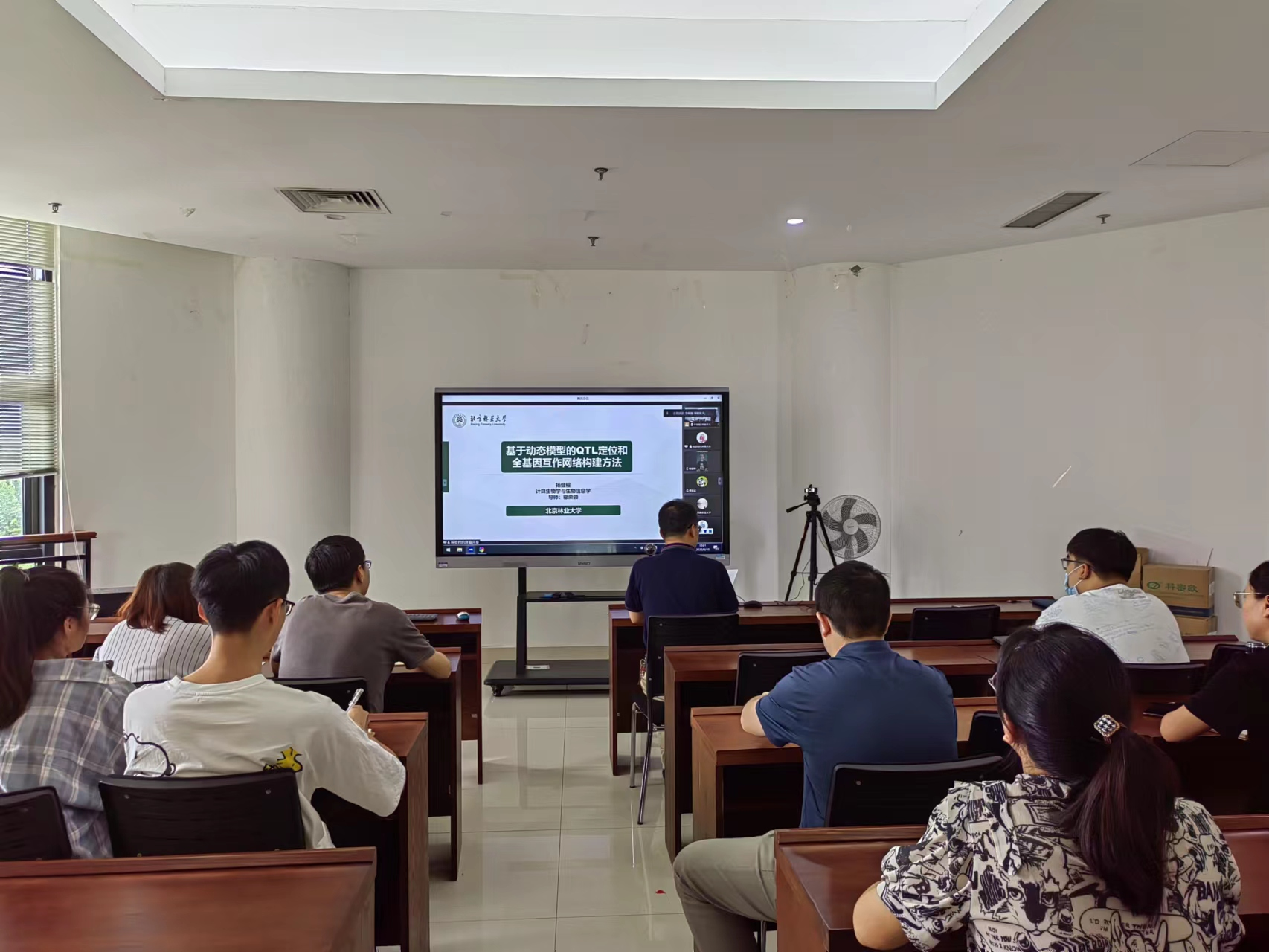 师生作“基于动态模型的QTL定位和全基因互作网络构建方法”和“基于宏转录组的野生动物新型病毒的发现与鉴定”的学术报告。报告会由丝袜av