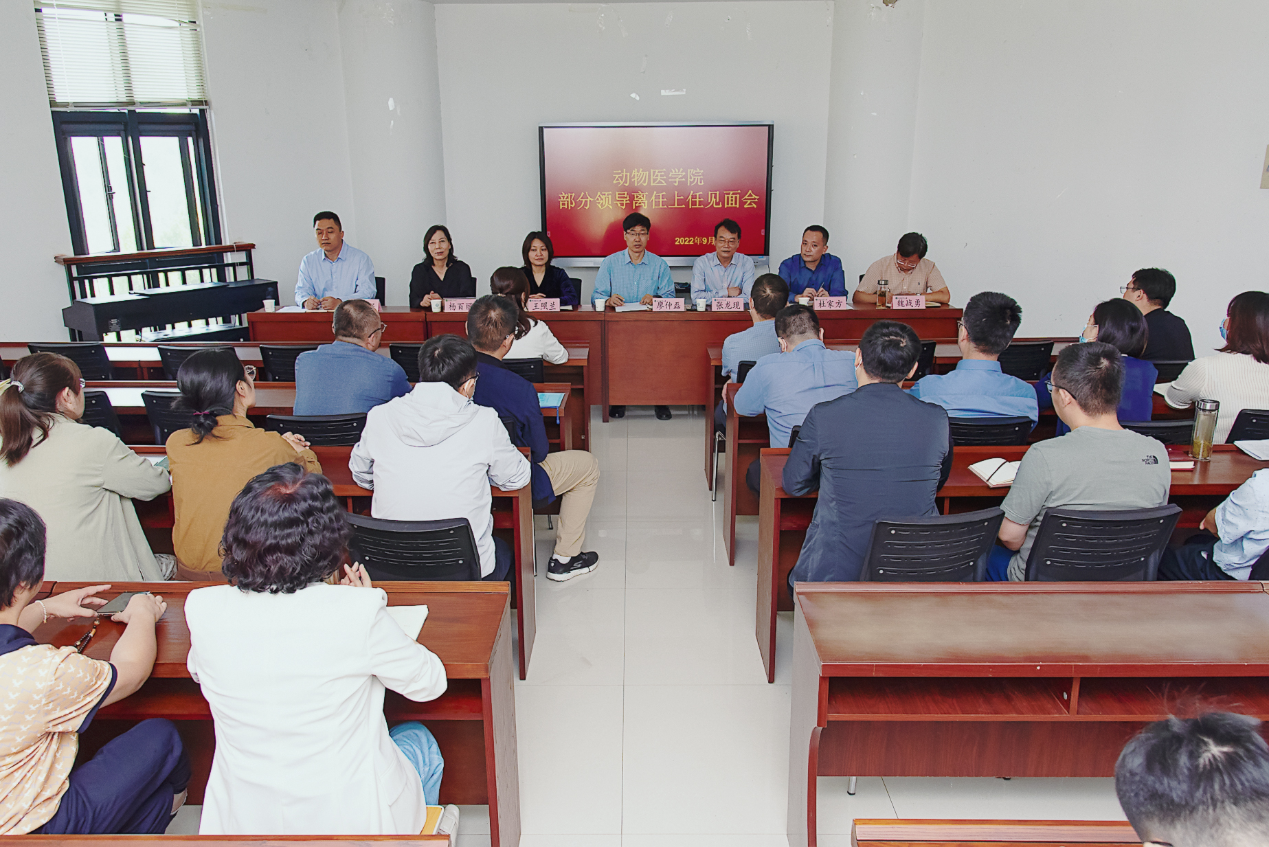廖仲磊对会议作总结,希望离任的领导离职不离心,给学院今后的工作多提宝贵建议。希望新上任的同志能够尽快熟悉新岗位,尽快进入角色,团结带领全院师生凝心聚力,干事创业,推动各项工作迈上新台阶、取得新进步、开创新局面,不辜负校党委信任和重托,不辜负动医师生的殷切期望。同时对学院新班子提出了四点要求:一、提高政治站位,全力支持工作;二、坚守各自岗位,做好本职工作;三、注重班子团结,凝聚发展合力;四、时刻廉洁自律,确保学院及个人健康发展。希望大家要坚定信念,注重学习提升,矢志艰苦奋斗,从一点一滴做起,把小事当大事干,踏踏实实把正在做的事情做好,以昂扬的斗志、百倍的信心、扎实的作风,开创学院发展新局面,以优异的成绩向党二十大献礼!(文/陈宇、图/靳向阳)