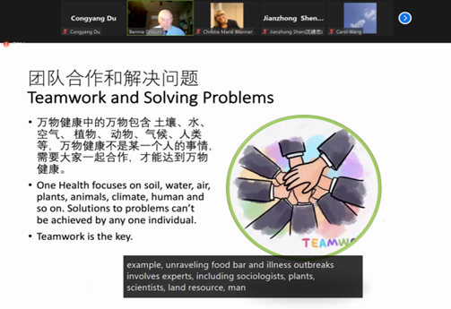 本次会议由美国加州大学戴维斯分校(UC Davis)主办,会议邀请了国内外多名专家学者,聚焦三大主题:抗生素耐药性、食源性疾病及寄生虫。会议比照加州大学戴维斯研究生的教学水平,旨在创造以学生为中心的沉浸式学习体验。通过讲座、小组合作、PBL等方式提高人们对“One Health同一健康”概念的认知。各位专家从环境健康、动物健康、人类健康等角度做精彩报告,探讨环境变化和社会发展对动物和人类健康的影响,以增强不同学科间的交流合作,共同实现全健康的目标愿景。