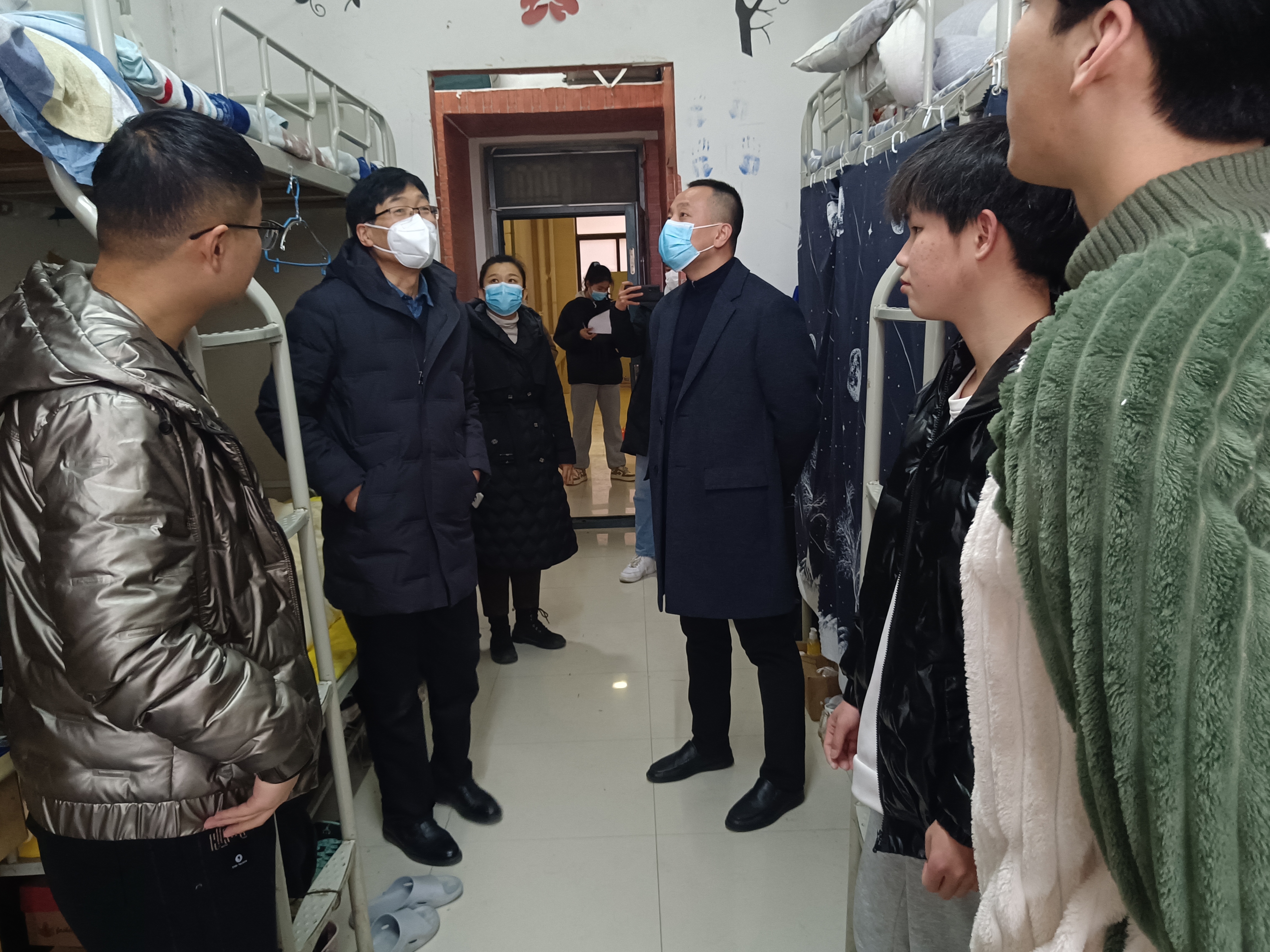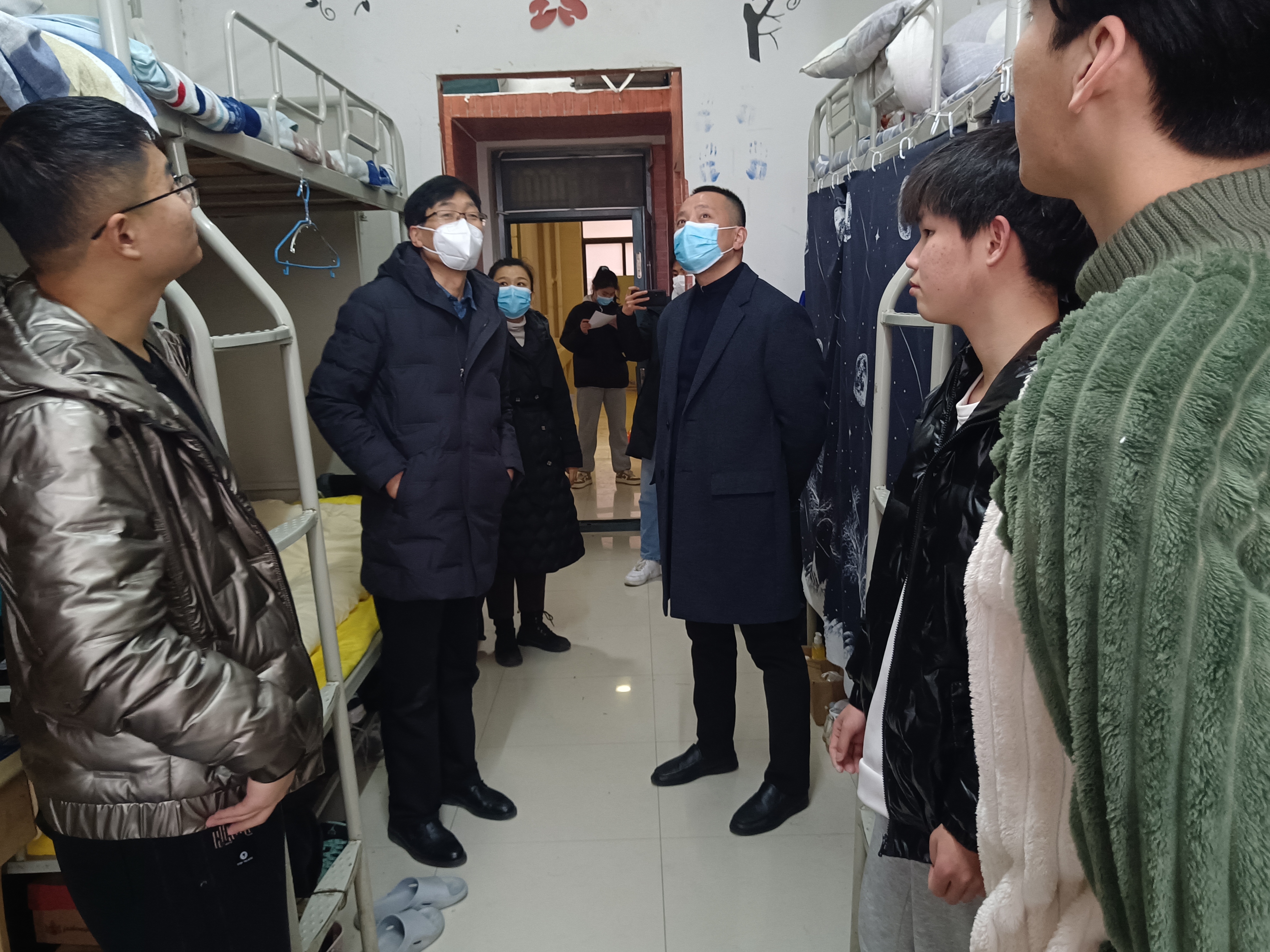 走访期间,廖仲磊亲切地与学生交谈,面对面详细了解学生假期生活及返校情况,耐心叮嘱学生们:一是要及时向学院反馈学习、生活上的困难,时刻注意宿舍卫生,努力营造一个安全、卫生、文明、和谐的学习、生活环境;二是要尽快从假期生活状态中调整过来,积极锻炼,强健体魄,以崭新的面貌投入到新学期的学习和生活中去;三是要做好新学期学习、生活规划,为大学的成长打下坚实打的基础,脚踏实地走好新学期的每一步。此外,他还特意向毕业生了解就业、考研情况,叮嘱毕业生,要做好具体规划,脚踏实地,锐意进取,为未来事业发展努力拼搏奋斗。杜家方与团委老师就如何培养良好的学习、生活习惯等问题与学生进行交流,叮嘱学生尽快调整状态,以良好的心态和积极的面貌迎接新学期。现场氛围热烈融洽,学生们纷纷对学院领导、老师的关心关爱表示感谢。