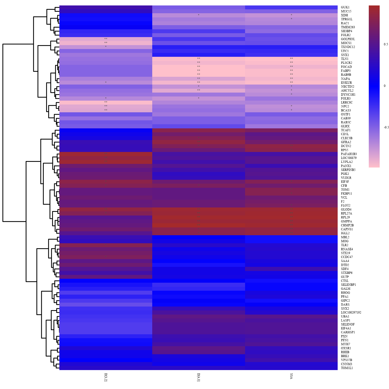 课题组前期研究发现反式脂肪酸-共轭亚油酸(CLA)是诱导奶牛形成MFD的主要因素。通过给奶牛饲喂共轭亚油酸(CLA)诱导乳脂肪含量降低(MFD),发现 CLA 处理显著降低了乳脂肪球粒径,增加小粒径脂肪球的比例而减少大粒径脂肪球比例。乳脂肪球被一层称为乳脂球膜(MFGM)的蛋白所覆盖,对奶牛进行CLA处理,采用iTRAQ定量蛋白质组学分析差异MFGM蛋白,发现乳脂肪球膜蛋白的表达与乳脂肪球粒径具有显著相关性(Journal of Dairy science 2022,中科院一区Top期刊)。