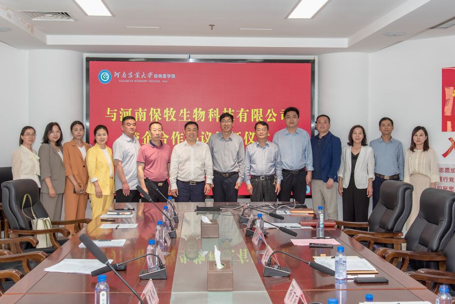 与河南保牧生物科技有限公司签订校企合作协议。河南保牧生物科技有限公司总经理张少征、飞默生物总经理曾凤祥、尉氏瑞元饲料公司总经理陈磊、河南畅享农牧有限公司兽医总监安春霞、河南正锐生物科技有限公司总经理张秀玲等一行8人,丝袜av