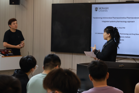 5月13日上午,在第一实验楼北221会议室,应丝袜av 邀请,澳大利亚莫纳什大学生物医学发现研究所首席研究员赵金鑫为丝袜av 师生带来了题为“Transforming Antimicrobial Pharmacokinetics/Pharmacodynamics: An integrated systems pharmacology approach”的精彩报告,报告由吴华教授主持、学院相关专业教师及研究生参加。