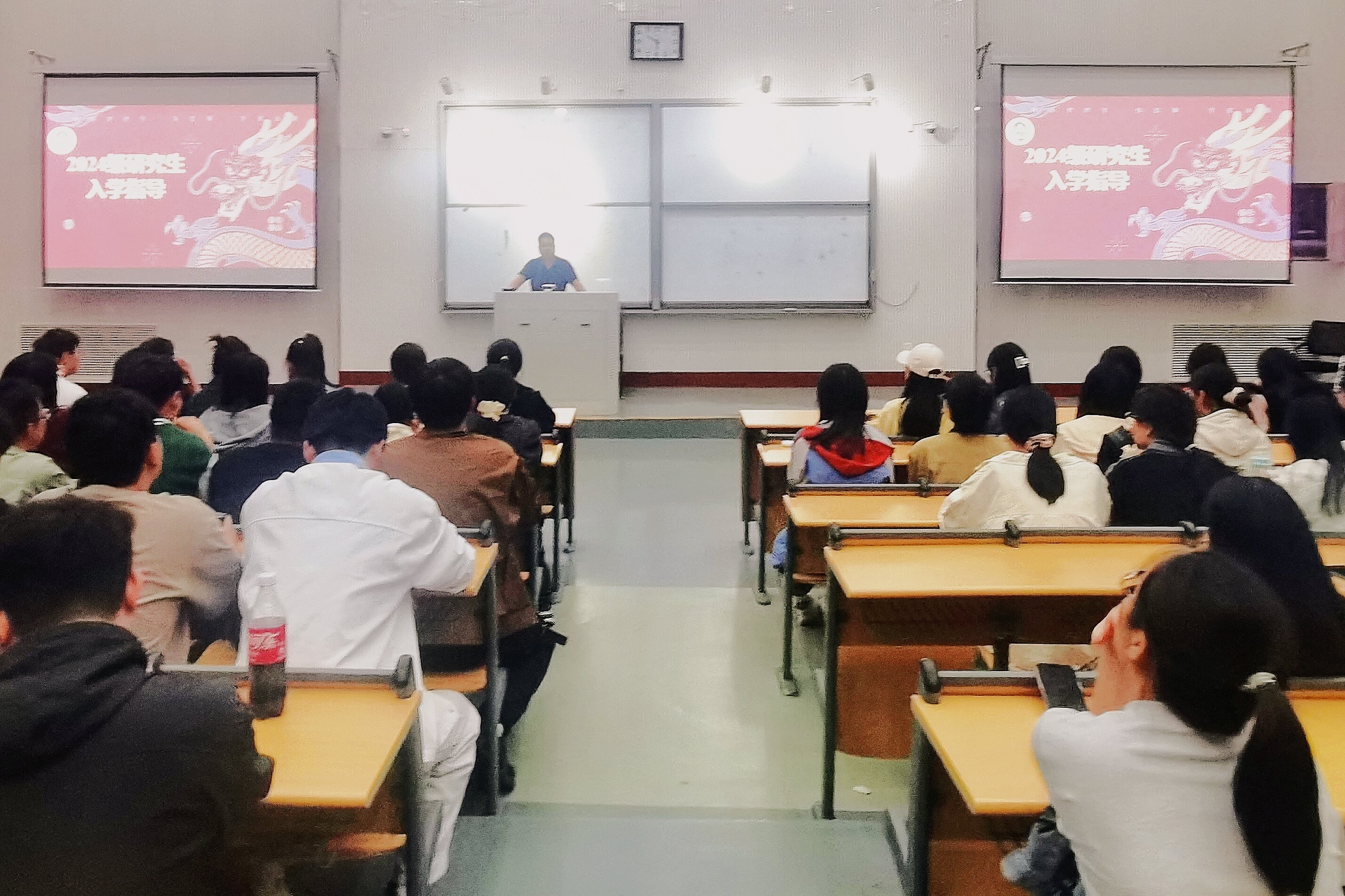 于9月23日晚在繁塔楼CD间一楼大教室五举行2024级研究生入学教育大会,副院长王荣军教授、研究生辅导员杨东东老师出席大会,2024级全体研究生参会。会议由杨东东主持。
