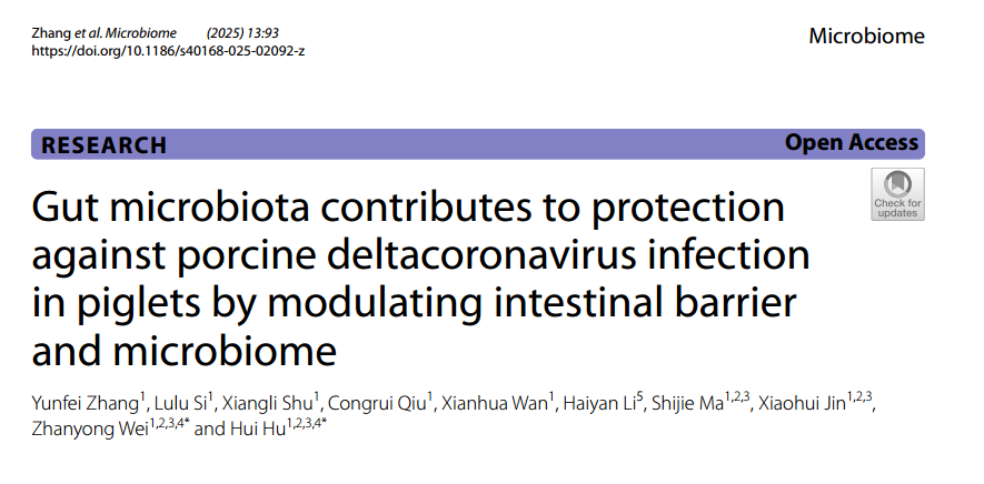 本研究表明不同年龄段猪的肠道微生物群会影响其对PDCoV的易感性。FMT通过维持肠道健康、调节肠道菌群的结构组成及其代谢功能,降低仔猪对PDCoV感染的易感性,揭示了肠道菌群在PDCoV感染过程的作用机制,在未来的畜牧养殖与疾病防控体系中,这一技术有望成为关键性的突破点,为生猪产业转型升级和公共健康安全保障提供创新性解决方案。