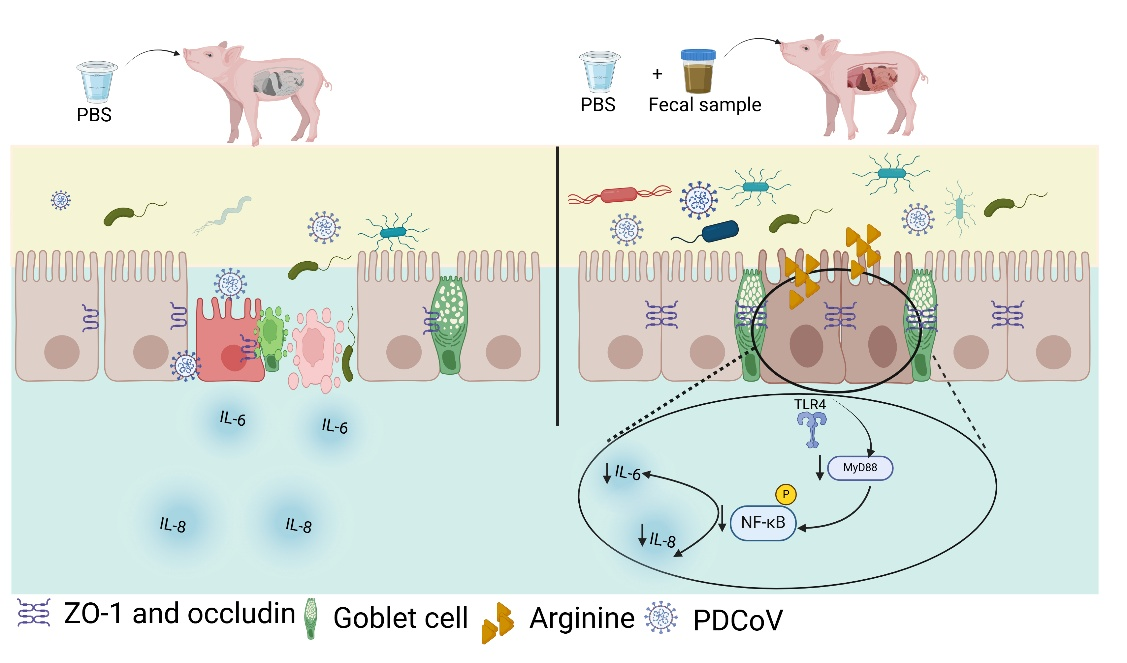 图3:基于宿主-病毒-肠道菌群介导PDCoV感染的机制