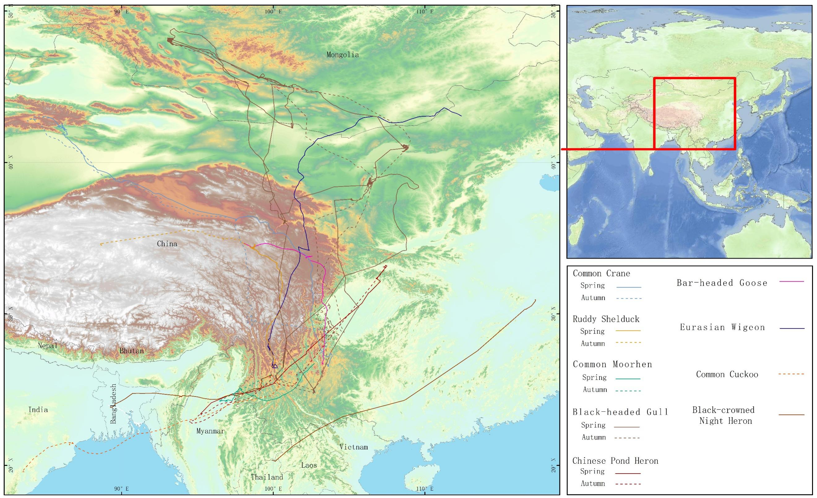 图 候鸟跨境迁徙路线图