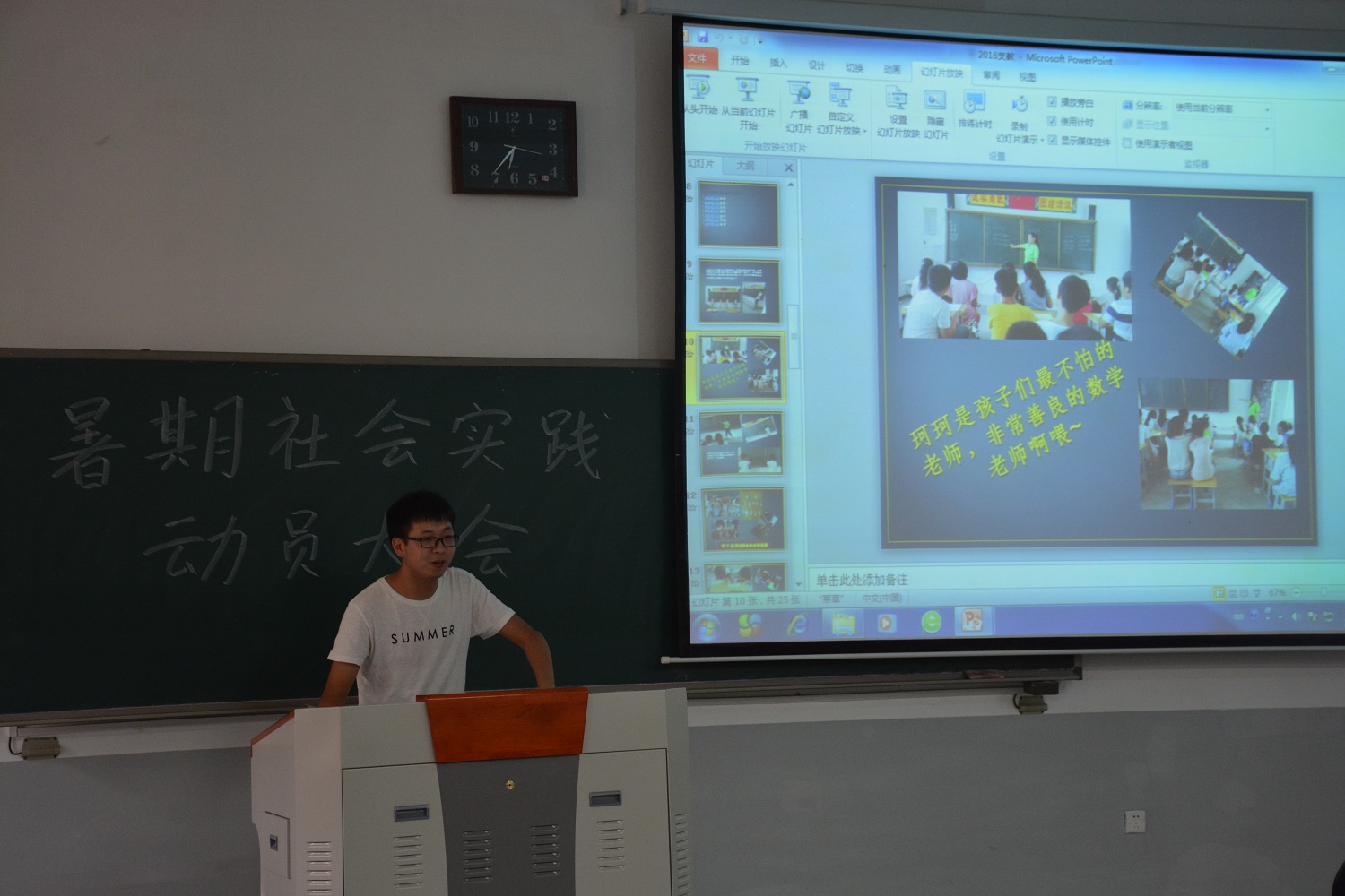 于繁塔楼C106举行暑期社会实践动员大会,团委副书记韩笑、15、16级班级负责人及社管会学生干部参加会议。