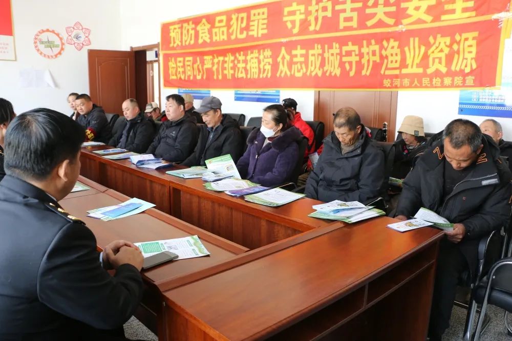 蛟河市检察院第一、第二检察部干警就村民提出的问题进行了解答,同时对危险驾驶、“帮信”犯罪、禁止非法捕捞等近十项刑事犯罪的典型案例和相关司法政策、法律适用进行了充分说明。市农业农村局、畜牧局工作人员向在场人员解读了非法捕捞、食品安全相关规定内容。与会人员就相关罪名和生产生活相关活动进行了热烈讨论。