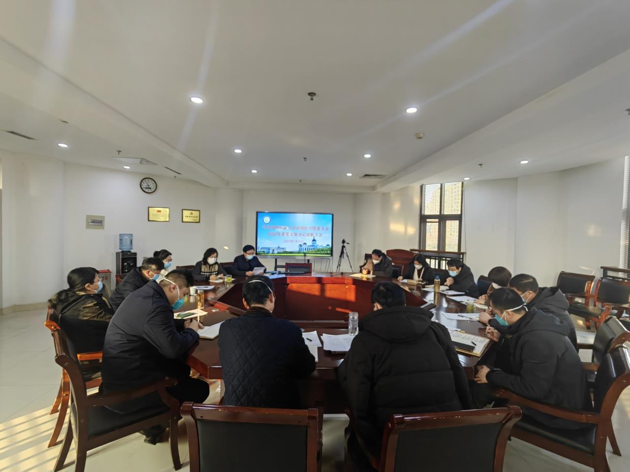 在第一实验楼430会议室召开“2022年度党支部书记抓党建述职评议考核会”。院党委成员:书记廖仲磊、院长张龙现、副书记杜家方、副院长杨百丽、魏战勇、韩立强出席会议。各党支部书记、副书记参加了会议。会议由张龙现主持。