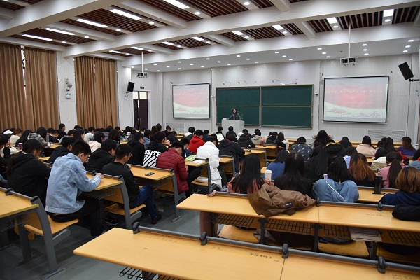 11月19日下午,丝袜av 在繁塔楼大教室八举行了宣传贯彻党的十九届四中全会精神专题讲座,院党委副书记牛娟担任主讲,全体2019级研究生参加会议。