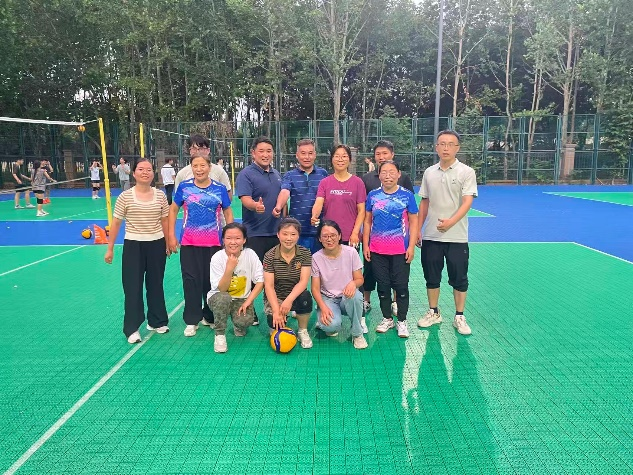 “屈膝、垫球、转身...”有着二十余年排球经验的院女排主教练王学兵教授多次手把手指导青年教师调整击球姿势,讲解排球规则,灌输排球知识。院主力排球队员王月影、焦显芹、商艳红、焦喜兰、金钺、王志丽、菅复春、张君涛及曾磊、靳向阳、张志平等老师组成陪练团,排好值班日程并责任到人,牺牲自己的运动时间,认真贯彻“一对一”陪练,金钺老师多次克服新老校区的长途奔波困难参加带训。老队员们将赛场上的拼搏精神融入训练细节,用“每球必争”、“永不气馁”的态度感染着年轻队员,运动场上常常是新老队员大汗淋漓,而又欢乐无比,这种跨越年龄与代差的经验传递,老队员、老教师真实具像化的无私关爱与帮助使新进教师有了归属感和家的温暖。