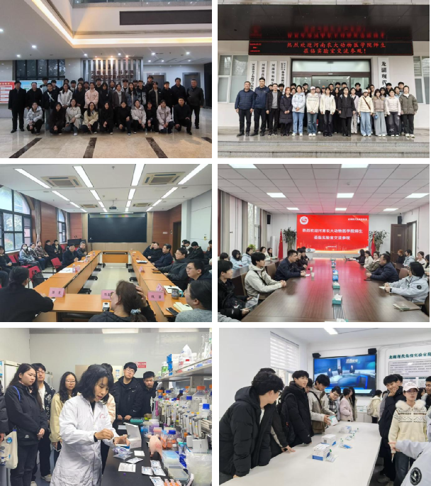 组织带领 25 级动医神农创新班学生,分别赴河南省农业科学院动物疫病防控研究所、龙湖现代免疫实验室开展座谈交流与实地参观活动,让学生近距离接触科研前沿、感受科研魅力,校所双方就人才联合培养、资源共享等核心议题深入研讨,共绘动医专业协同育人新蓝图。