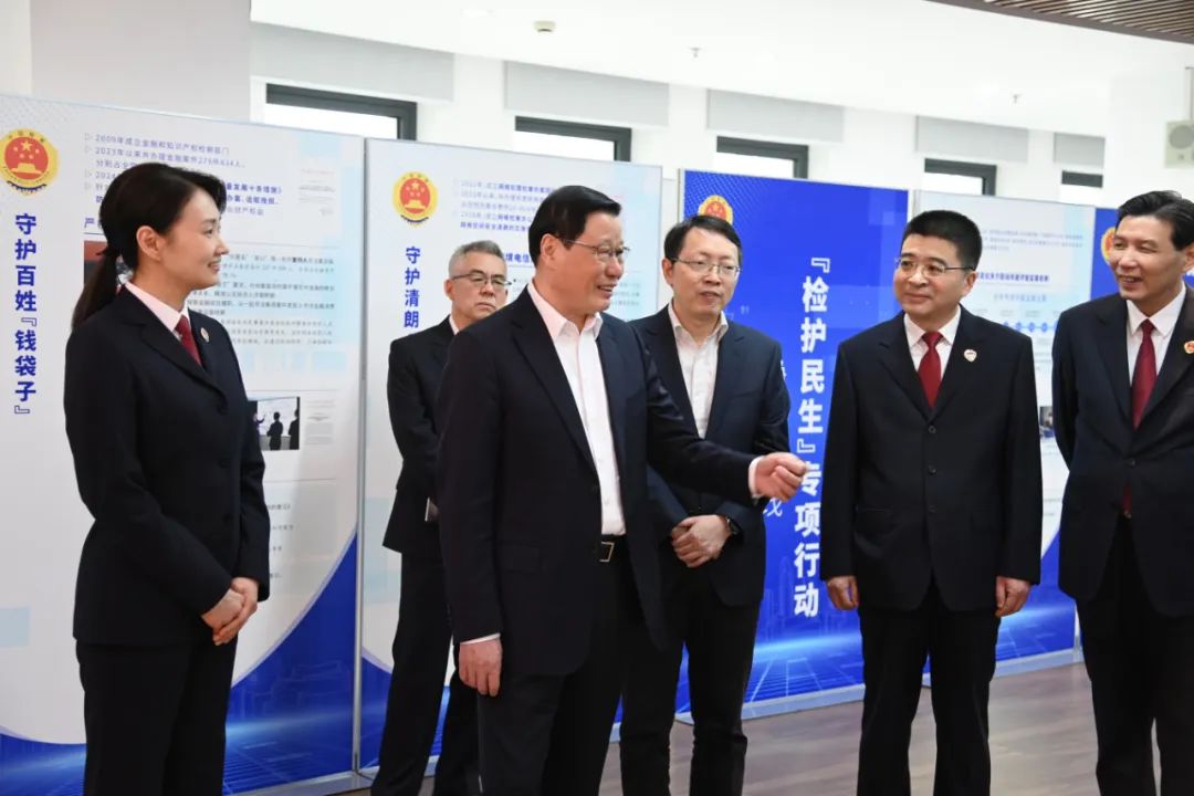 在上海市检察院,应勇听取相关工作情况汇报,对上海检察工作给予充分肯定。他强调,上海是党的诞生地、初心始发地、伟大建党精神孕育地。上海检察机关要深入学习贯彻习近平总书记对政法工作的重要指示和考察上海重要讲话精神,巩固拓展主题教育成果,赓续红色基因,始终坚持党对检察工作的绝对领导,持续推动习近平法治思想的检察实践,不断擦亮新时代新征程检察机关坚定拥护“两个确立”、坚决做到“两个维护”的鲜明政治底色。要立足检察职能,充分运用法治力量服务上海“五个中心”建设,促进中国特色超大城市治理现代化。营商环境是上海的金字招牌,是城市软实力。要更加有力服务高质量发展,不断健全完善工作机制、工作规范,为全国检察机关服务市场化、法治化、国际化营商环境建设提供更多经验。金融和科创是上海的核心功能。上海检察机关有基础、有条件、有责任在金融检察、知识产权检察工作中探索创造更多经验,更好服务保障金融高质量发展、创新驱动发展。要树立国际视野、增强法治思维,对标国际先进水平,在涉外案件办理、国际执法司法合作、参与国际规则制定、涉外法治人才培养等方面,推出更多有效举措,积极探索与现代化国际大都市相适应的检察涉外法治工作格局。要充分发挥上海改革创新精神,当好检察改革创新的排头兵、先行者,切实发挥示范引领作用,为加快推进检察工作现代化提供“上海经验”。要聚焦法律监督主责主业,在有效破解制约监督履职的堵点难点问题上下功夫,持续关注“四大检察”的结构比、依程序受案与依职权监督受案之比等,把“高质效办好每一个案件”贯穿“四大检察”全过程,持续推动“四大检察”全面协调充分发展。要从严从实开展党纪学习教育,结合上海实际抓实警示教育,完善一体推进“三不腐”、防治“灯下黑”机制,纵深推进全面从严治检。上海检察机关各级领导干部要以身作则、从严自律,带头严于律己、严负其责、严管所辖,切实做到忠诚干净担当。